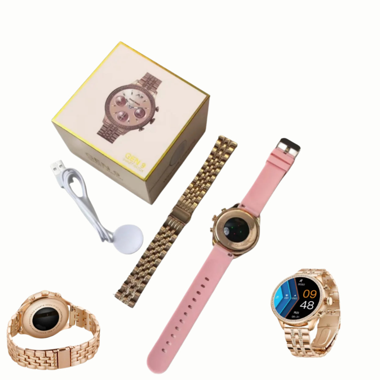 Plaxonic Fossil Gen 9 Golden Diamond Strap, Luxurious Smartwatch ( 2 BELT) Bluetooth Calling ,(ROSE GOLD)