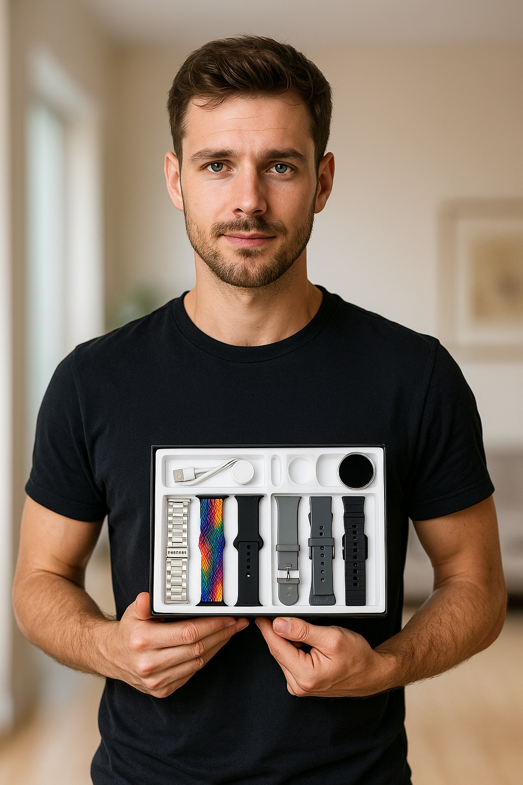 Yeh Couple Smart Watch Combo specially design kiya gaya hai modern couples ke liye jo ek saath smart aur stylish rehna pasand karte hain.