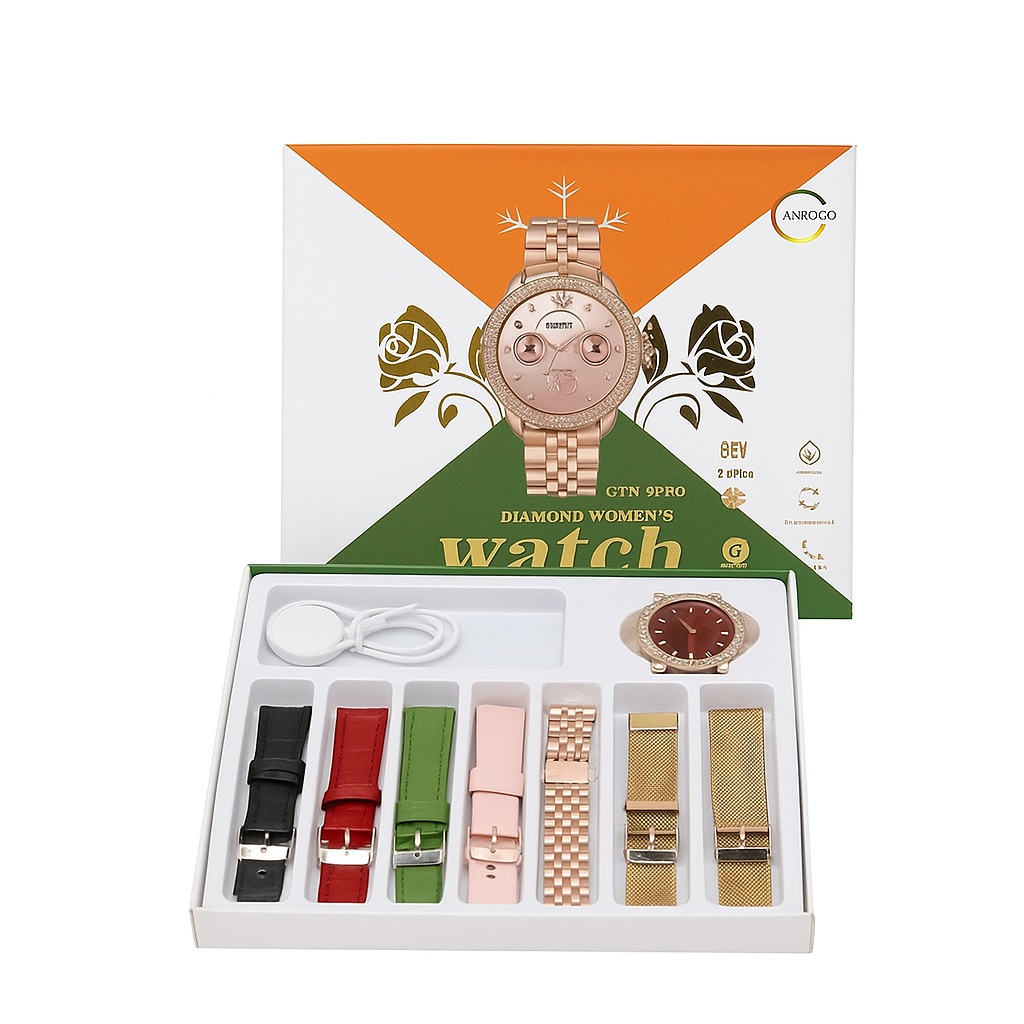 Stylish Diamond Dial ke sath aati hai aur 7 premium belts included hain – har look ke liye perfect!